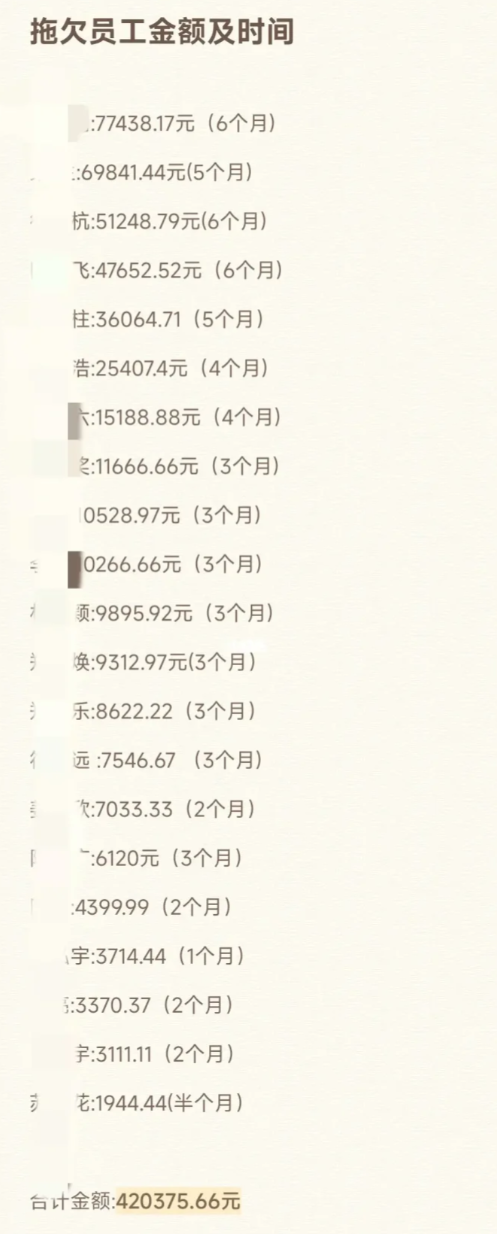 2、員工控訴:幾個月沒發(fā)工資了, 單店就欠薪近42萬余元
