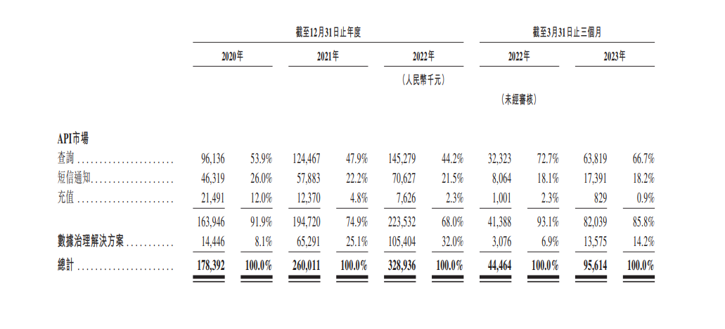 天聚地合成立于2010年,根據(jù)弗若斯特沙利文報(bào)告,按 2022 年的收入計(jì),天聚地合是中國最大的綜合性 API 數(shù)據(jù)流通服務(wù)商,市場(chǎng)份額為 6.1%。