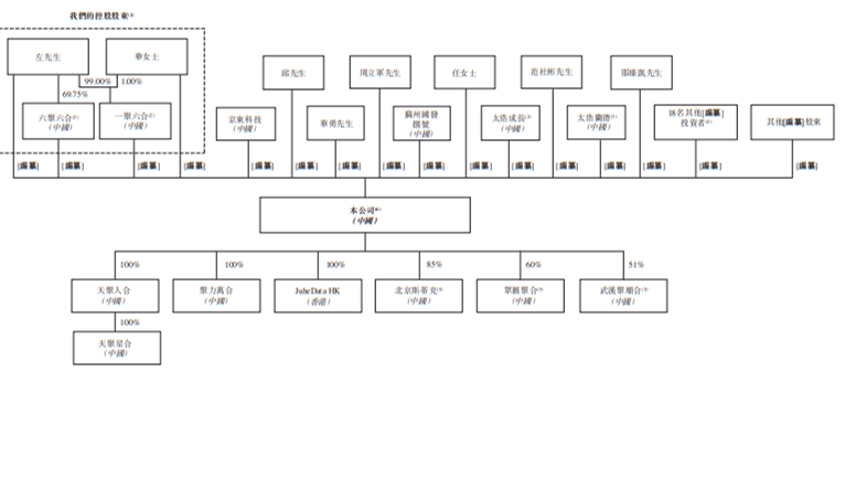 IPO前,左磊直接持股為43.59%,通過六聚六合控制1.84%股權(quán),通過一聚六合控制7.75%股權(quán),華洹女士直接持股為0.15%,一起組成聚合數(shù)據(jù)的控股股東,華洹女士為左磊的配偶。