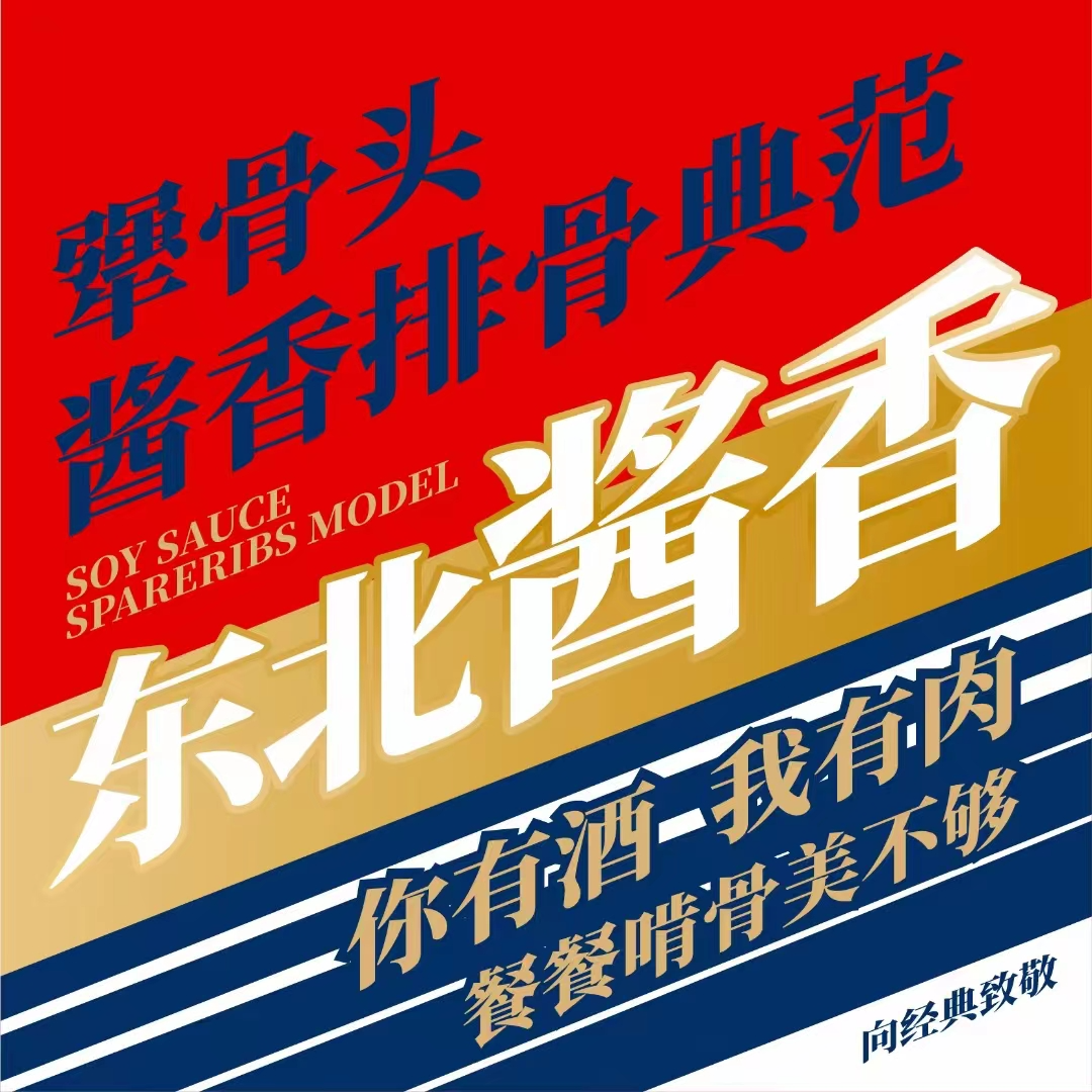 而一知名連鎖排骨飯品牌則打出了“犟骨頭,醬香排骨經(jīng)典,東北醬香,你有酒我有肉,餐餐啃骨美不夠”的海報。