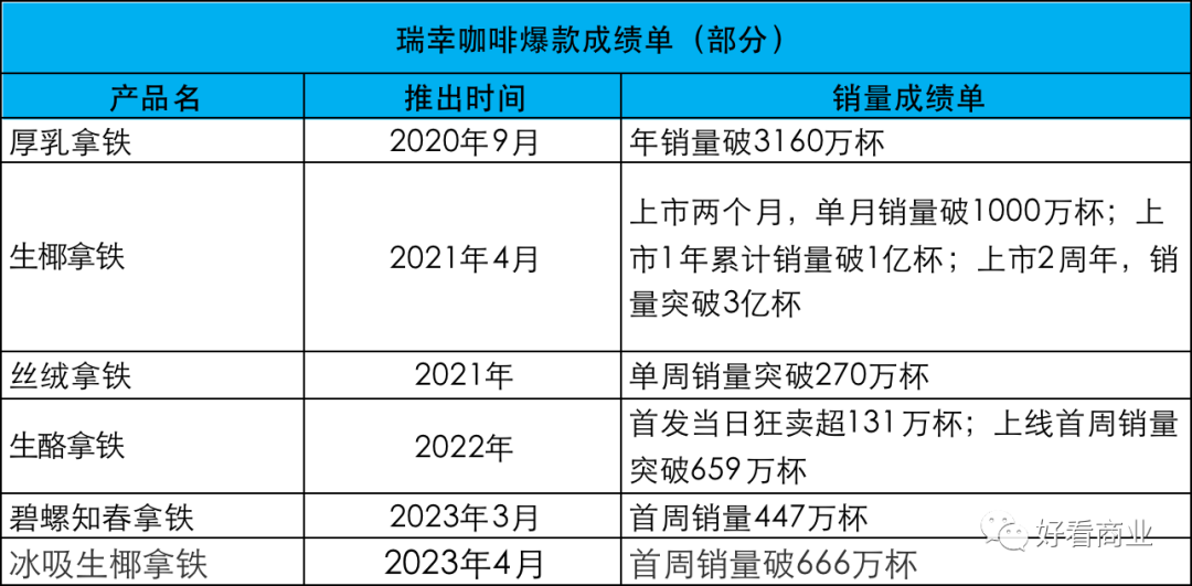 對于瑞幸來說,打造爆款似乎已經(jīng)輕車熟路。先來看看他們創(chuàng)造過的爆款成績單: