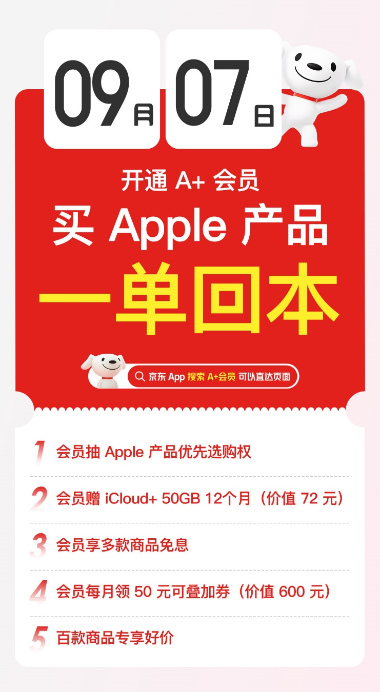 京東上線A+會(huì)員重磅新權(quán)益 限時(shí)抽取Apple產(chǎn)品優(yōu)先選購權(quán)