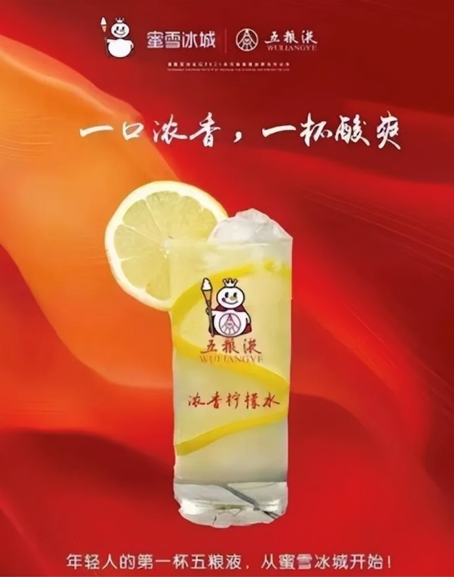 與此同時,網(wǎng)傳蜜雪冰城將與五糧液聯(lián)名,推出一款濃香檸檬水,也引發(fā)了關(guān)注。據(jù)悉,該網(wǎng)傳海報配文為“年輕人的第一杯五糧液,從蜜雪冰城開始”。