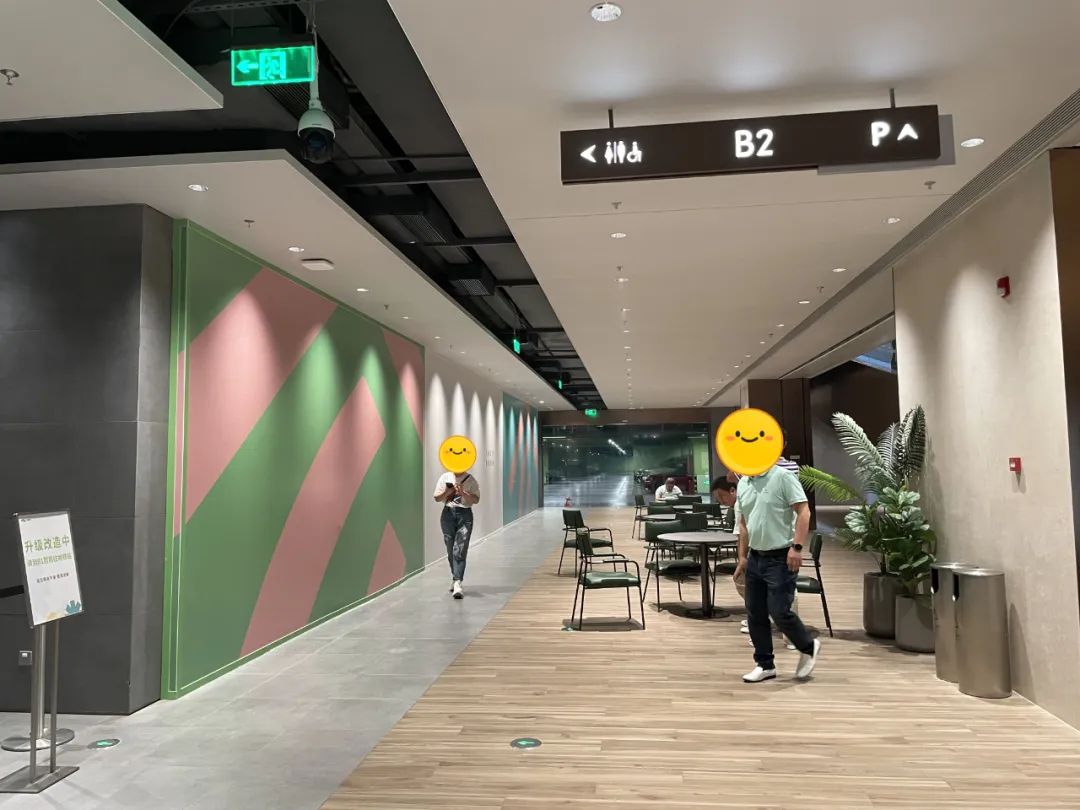 現(xiàn)場(chǎng)可以看到,從B1江壹道螺螄粉對(duì)面的電梯下去(直通停車場(chǎng)),B2在此區(qū)域的店鋪已經(jīng)全關(guān),并且上了圍擋,未顯示品牌,只告知了升級(jí)改造中。