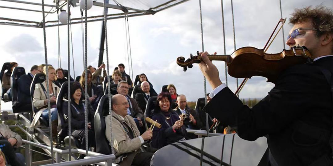 在品牌官網(wǎng)的介紹中,空中餐廳可提供高空場地舉辦音樂會(huì)、電影放映等活動(dòng),只需要將空中餐廳改造成舞臺(tái)或者觀影場地,現(xiàn)場可容納30位觀眾。