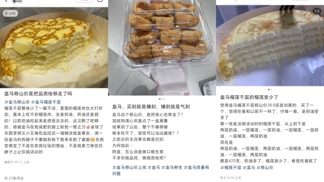 除此之外,最被消費(fèi)者詬病還有品控,在盒馬大舉推出移山價(jià)后,社交平臺(tái)上關(guān)于其品質(zhì)下降的質(zhì)疑也與日俱增。
