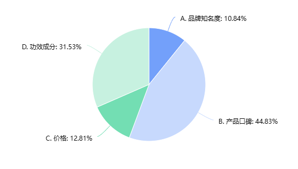 《FBeauty未來跡》隨機(jī)對(duì)203名80-90后消費(fèi)者開展的眼霜消費(fèi)調(diào)查顯示,消費(fèi)者眼霜的心理價(jià)位主要集中在200-500元之間,有23%的消費(fèi)者能接受500元及以上的貴價(jià)眼霜。而在決定購(gòu)買的因素中,44.8%的消費(fèi)者看中“產(chǎn)品口碑”,31%的消費(fèi)者在購(gòu)買眼霜時(shí)更看中“功效成分”,價(jià)格和口碑反倒排在后面,這體現(xiàn)出大眾對(duì)于眼霜功效和品質(zhì)的更高追求。