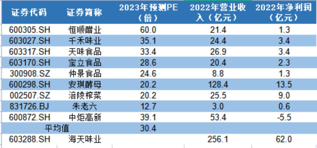 假設2023年受益餐飲渠道恢復,海天味業(yè)營收增速回到10%左右的水平,凈利率維持25%左右,即2023年其預計獲取的凈利潤約為70億左右,按照25-30倍市盈率簡單計算,整體的合理估值為1750-2100億元,對比當前2180億的市值,仍有3%-19%的下跌空間。