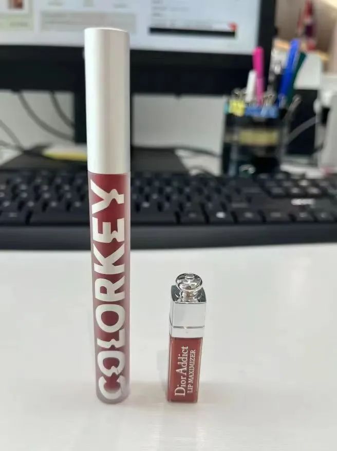 口紅就更夸張了,即便是國(guó)貨平價(jià)好物的代表珂拉琪(Colorkey)唇釉,容量也只有1.7ml。具體是什么概念呢?可以對(duì)比下左邊1.7ml的正裝和右邊dior 2ml的小樣。
