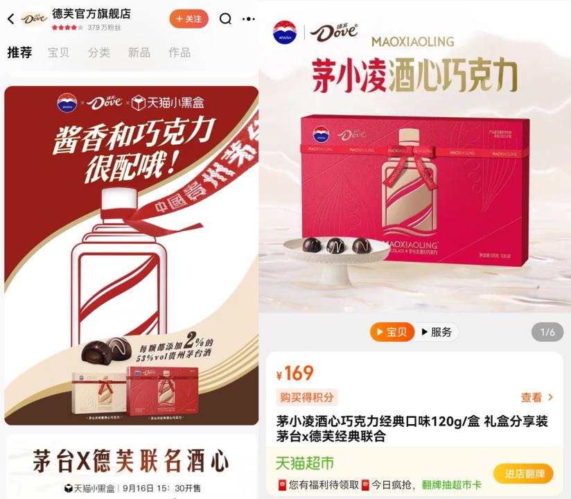 9月16日下午三點(diǎn)半,貴州茅臺(tái)與德芙聯(lián)名的“茅小凌”酒心巧克力正式發(fā)售。