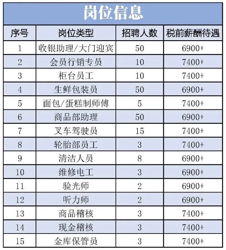 此外,深圳Costco已發(fā)布招聘信息,招聘職位包括收銀助理、柜臺(tái)員工、生鮮包裝員、商品稽查、現(xiàn)金稽查等15個(gè)職位信息以及200多個(gè)崗位(來(lái)源:深圳龍華人資),且薪資均在6900-7400元之間。