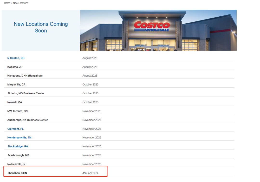 不過(guò)值得關(guān)注的是,筆者翻閱Costco官網(wǎng),根據(jù)官網(wǎng)顯示,Costco深圳龍華店顯示的開(kāi)業(yè)時(shí)間是2024年1月,并非網(wǎng)傳的今年11月。