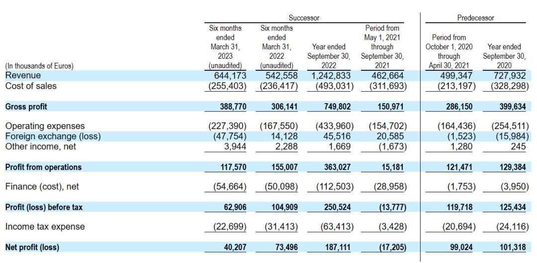 憑借舒適的腳感和松弛的氣質,Birkenstock成為中產們的心頭愛。正如招股書透露:截至2022年9月30日的財年中,Birkenstock營收為12.43億歐元,凈利為1.87億歐元,折合人民幣分別約為100億元和14億元。而2022財年到2023年3月31日的半年間,公司收入同比漲至6.44億歐元。