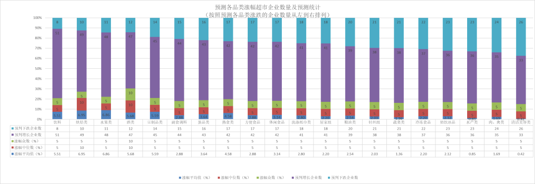 調(diào)查顯示:有51家企業(yè)預(yù)測銷售上漲(占比86%),8家企業(yè)預(yù)測銷售下跌(占比14%),預(yù)估銷售的中位數(shù)及眾數(shù)為增長5%,平均值5.51%。在出游需求、節(jié)慶送禮、餐桌必備等多消費(fèi)場景激發(fā)下,飲料穩(wěn)中有增預(yù)判較為趨同。