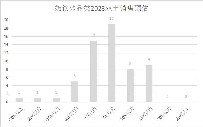 調(diào)查顯示:有43家企業(yè)預(yù)測銷售上漲(占比73%),16家企業(yè)預(yù)測銷售下跌(占比27%),預(yù)估銷售的中位數(shù)與眾數(shù)都為增長5%,平均值為3.64%。預(yù)判趨勢較為穩(wěn)定,但與往年相比,在家時(shí)間減少,外出人口流動增加或?qū)︿N售產(chǎn)生影響。