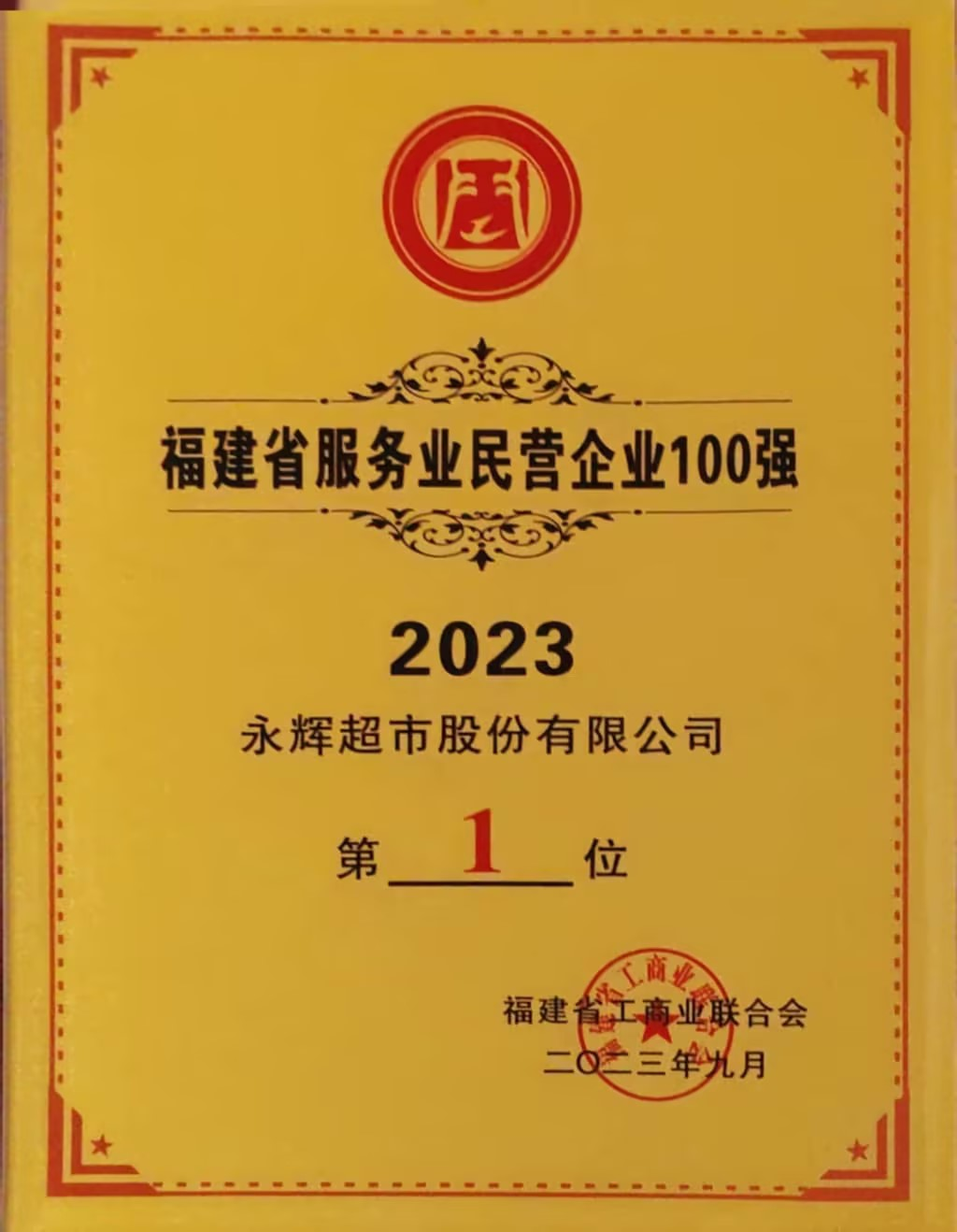 永輝再次入選2023福建省民營企業(yè)100強(qiáng)
