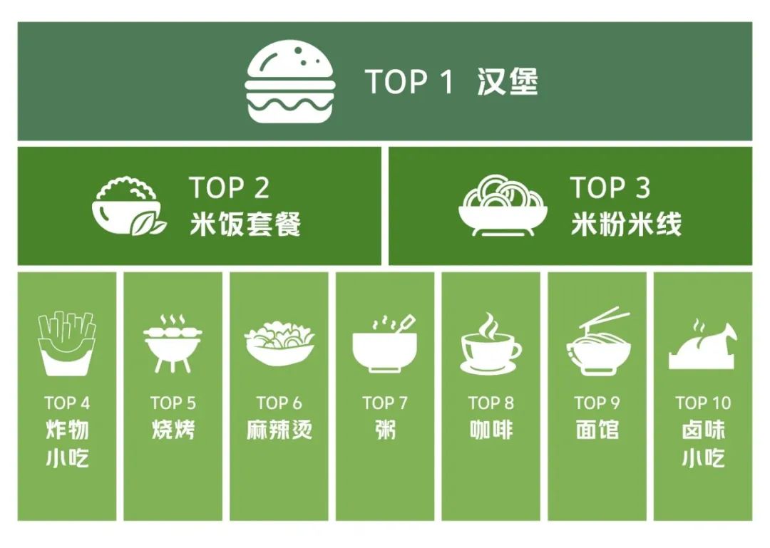 在餐飲企業(yè)選址拓店過程中,一些炸物小吃新興品牌會(huì)錨定蜜雪冰城等新茶飲大連鎖開店,降低選址失敗風(fēng)險(xiǎn),并共享錯(cuò)品經(jīng)營流量。同樣,線上場景也存在跨品類最佳拍檔,以響應(yīng)用戶“干濕搭配,濃淡相宜”的飲食習(xí)慣。報(bào)告通過對(duì)美團(tuán)外賣新茶飲重度用戶下單其他品類的交叉分析發(fā)現(xiàn),漢堡、米飯快餐、米粉米線、炸物小吃、燒烤是前五名。