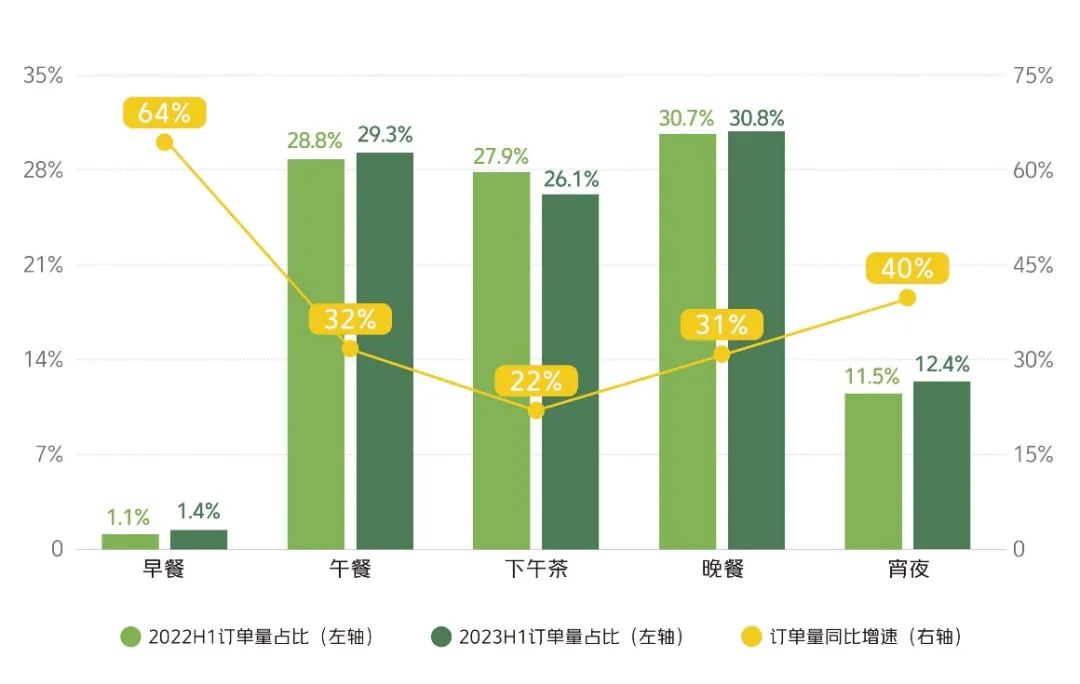 2023上半年美團(tuán)外賣新茶飲品類各時(shí)段訂單量占比及增速