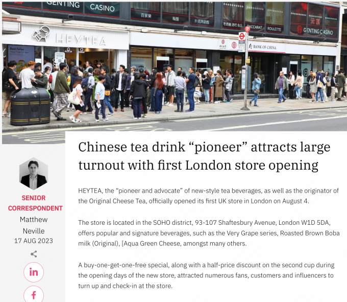 《經(jīng)濟(jì)學(xué)人》《英國日?qǐng)?bào)》報(bào)道中國新茶飲海外繁榮景象