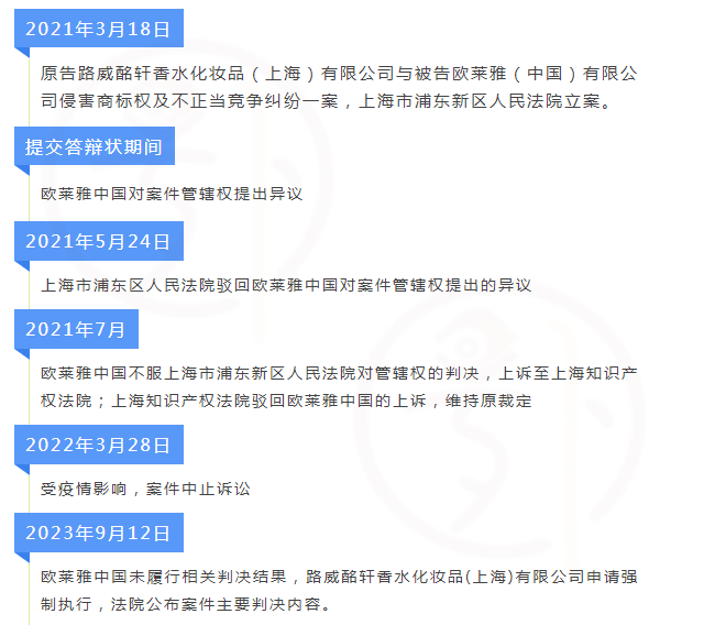 2021年3月18日,上海市浦東新區(qū)人民法院就原告LVMH公司與被告歐萊雅中國侵害商標(biāo)權(quán)及不正當(dāng)競爭糾紛一案進行立案。