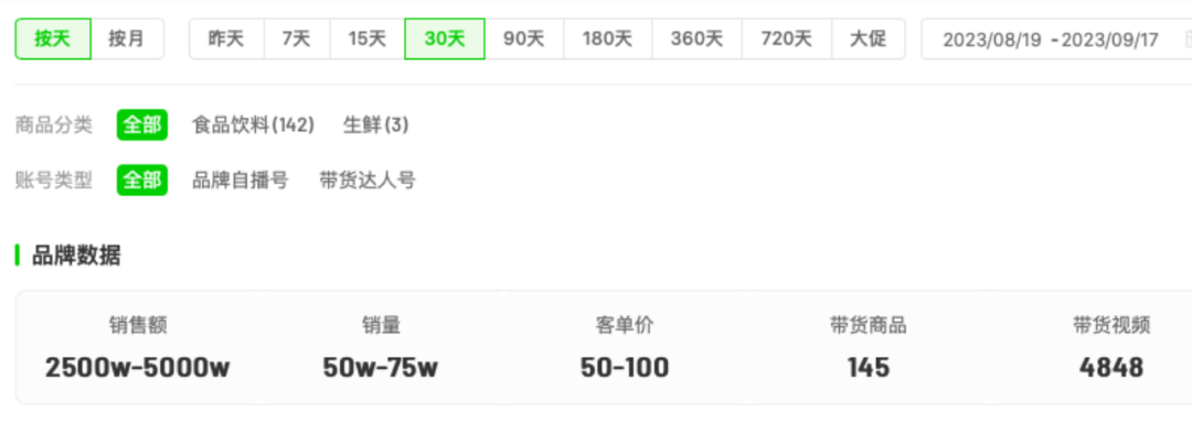 當(dāng)天的總銷售額為1萬-2.5萬。以各類型達(dá)人銷量占比來講,李子柒品牌產(chǎn)品還是很扛得住的,只不過,或許是李子柒離開的影響,品牌本身缺少流量,加上在抖音渠道發(fā)展商端,還沒有獨(dú)立,因此會強(qiáng)依賴外部達(dá)人賦能流量,一旦減少達(dá)人投放,李子柒品牌的銷售額就不會太樂觀。