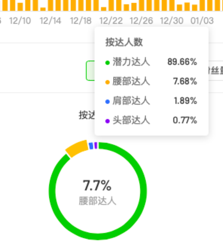 他們主要投放潛力達(dá)人,占比89.7%,而頭部達(dá)人和肩部達(dá)人的占比分別是0.77%和1.89%。