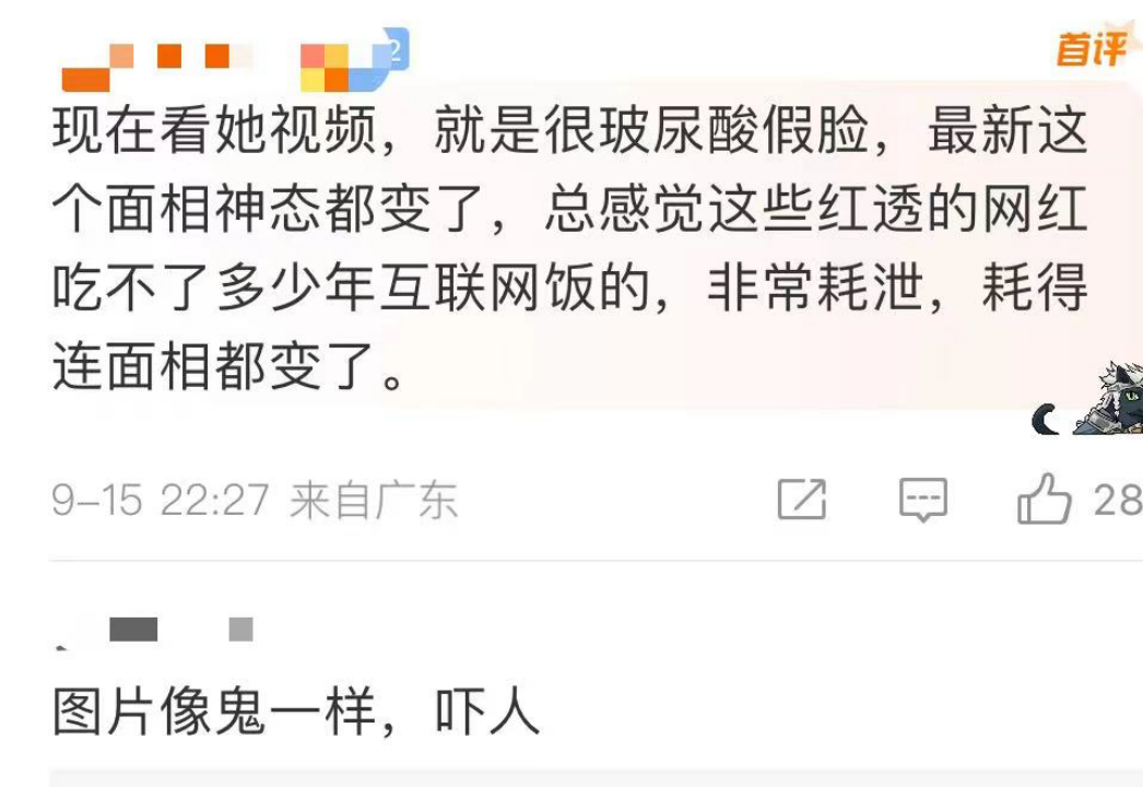 “現(xiàn)在看她視頻,就是很玻尿酸假臉,最新這個面相神態(tài)都變了!