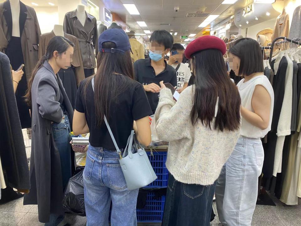 沙河市場(chǎng)的服裝批發(fā)生意節(jié)奏極快。時(shí)代財(cái)經(jīng)注意到,這里每個(gè)檔口都會(huì)站著幾個(gè)年輕店員,她們身著店里最新款式,作為店里的“活招牌”。前來(lái)挑貨的老板與店員的交流往往非常簡(jiǎn)單高效——原地轉(zhuǎn)一圈看看款式,十幾秒就完成看貨過(guò)程,然后走向下一個(gè)檔口。