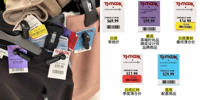 在營(yíng)銷設(shè)計(jì)上,TJX也別出心裁,不同于一般百貨店,往往是附上“原價(jià)+折扣價(jià)”的標(biāo)簽,TJX則標(biāo)出“折扣價(jià)+市場(chǎng)價(jià)”,如此一來(lái),競(jìng)對(duì)的價(jià)格一覽無(wú)余,而比市場(chǎng)價(jià)低20%至60%的魅力無(wú)限放大。