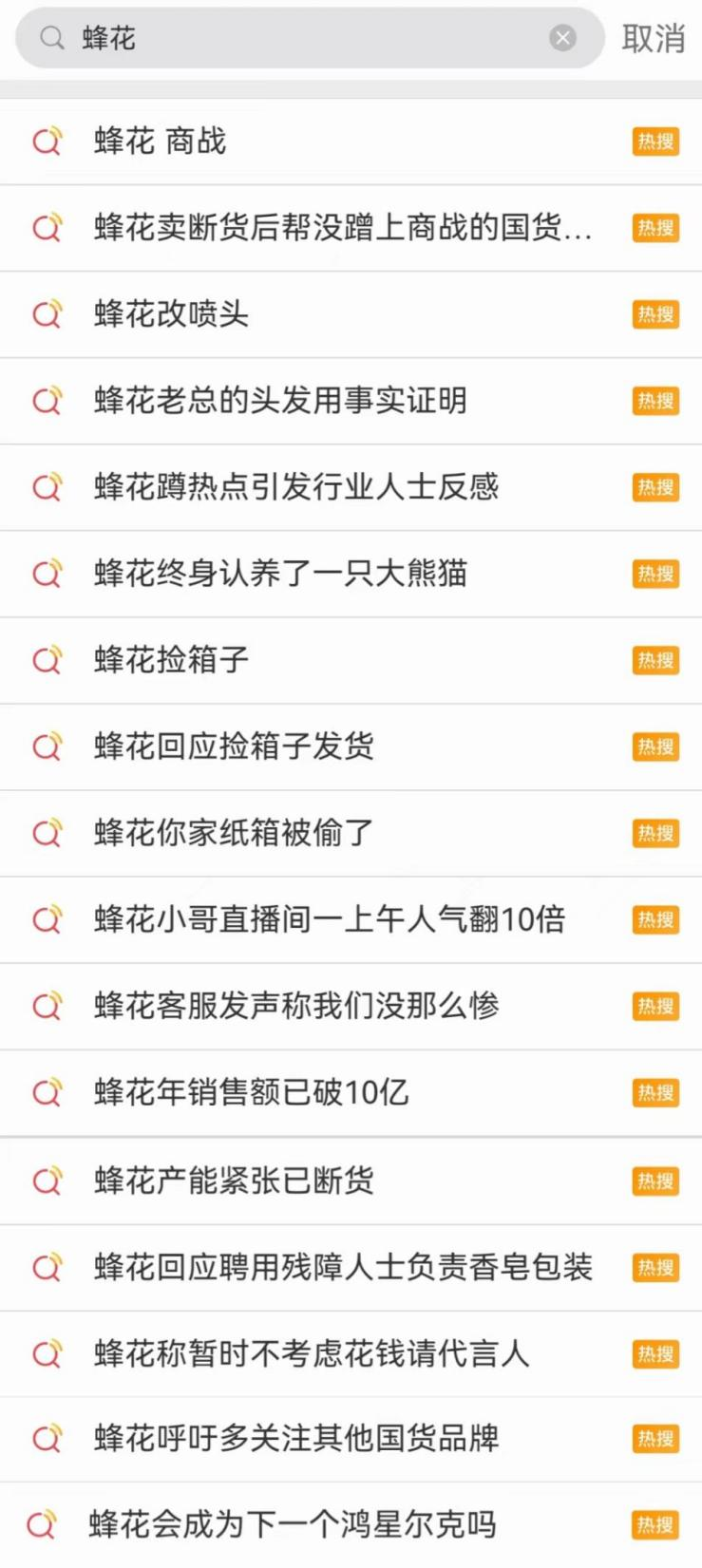 盡管蜂花董事長顧錦文隨后在接受媒體采訪時,對熱搜中提到的“蜂花老板含淚親自直播”等內容的真實性進行了否認,并且說明這些熱搜并不是蜂花有意為之。