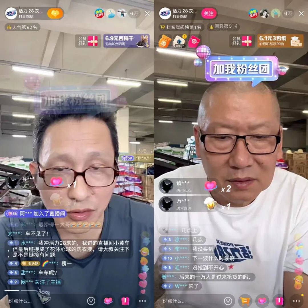 在老國貨品牌狂歡熱潮逐漸退去后,直播間仍熱鬧不減的,也許只!叭齻(gè)小老頭”撐起來的“活28衣物清潔旗艦店”了。