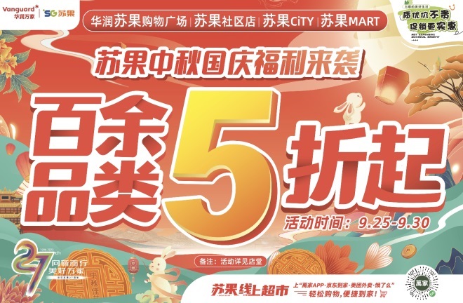 華潤蘇果中秋國慶“放大招”,線上線下百余品類五折起