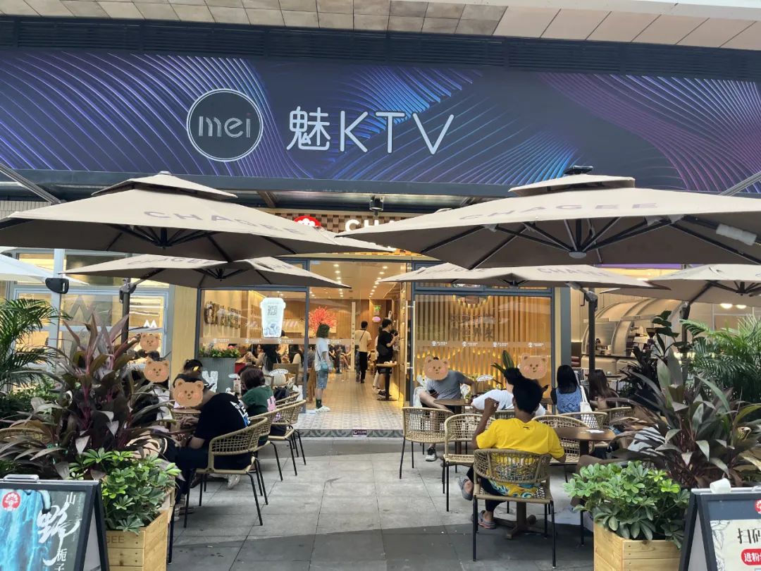 外擺用綠植做空間隔斷,與旁邊的其他品牌隔開,外面擺了7、8張桌子,都坐滿了人。