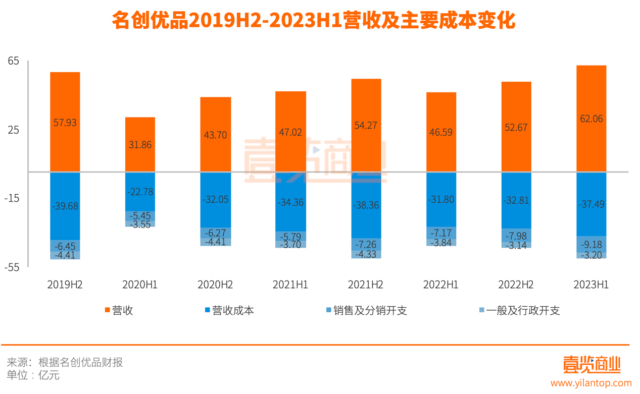 去年下半年,名創(chuàng)優(yōu)品營收出現(xiàn)了同比2.95%的下滑,但經(jīng)營利潤卻從4.69億元提升至9.57億元,漲幅104.09%。這半年主要歸功于“省”,一是生產(chǎn)制造成本的縮減,二是一般及行政開支的縮減。