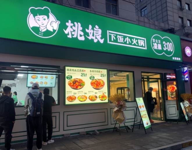 店面面積上:傳統(tǒng)火鍋在200㎡以上;下飯小火鍋在60-100㎡之間,比大火鍋門店小一半有余。