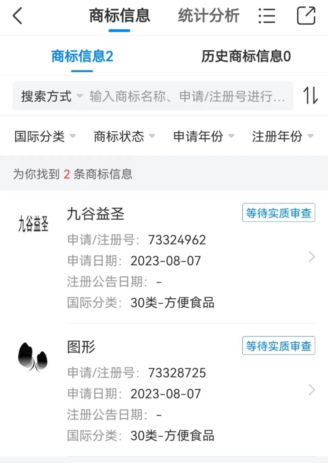 其中方便米飯、凍干食品等產(chǎn)品正隸屬于預制菜的范疇。目前,商標仍處于等待實質審查階段。