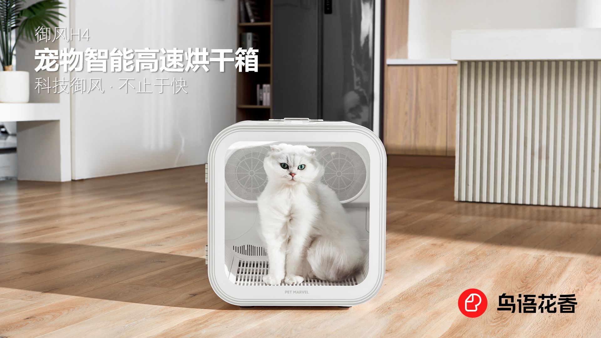 針對寵物洗澡后的烘干步驟,鳥語花香升級2代「御風(fēng)H4智能高速烘干箱」,采用自研高速雙風(fēng)機(jī)與6重工業(yè)降噪技術(shù),將動輒60分鐘的烘干時(shí)長縮短至“15分鐘起”,解決了烘干慢、噪音大等備受詬病的普適性痛點(diǎn)。