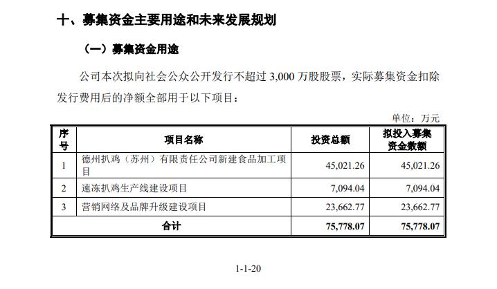 按今年3月份招股書所披露的計(jì)劃,德州扒雞IPO擬向社會(huì)公眾公開發(fā)行不超過3000萬(wàn)股股票,計(jì)劃募資約7.58億元。