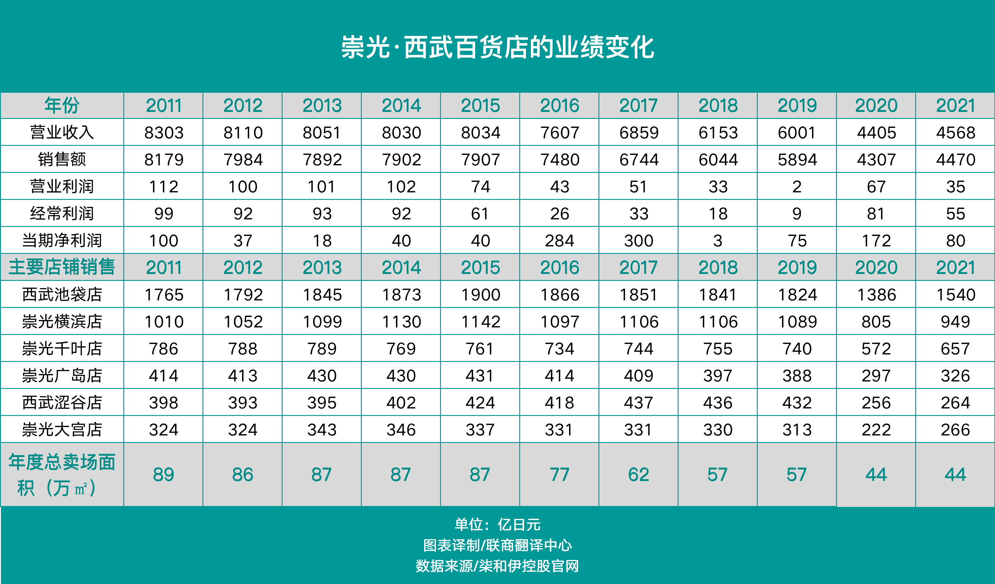 崇光·西武百貨店業(yè)績(jī)變化。 來源:柒和伊控股官方網(wǎng)站 制圖:聯(lián)商翻譯中心