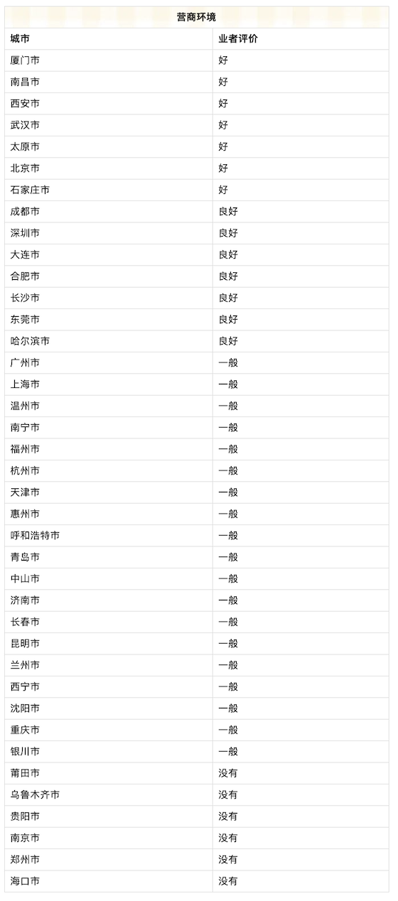 營商環(huán)境指數(shù):按照調(diào)查出的好、較好、良好、一般、較差、差,降幅賦值100-50。