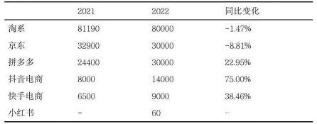 2022國內主流電商平臺GMV對比(單位:億元)