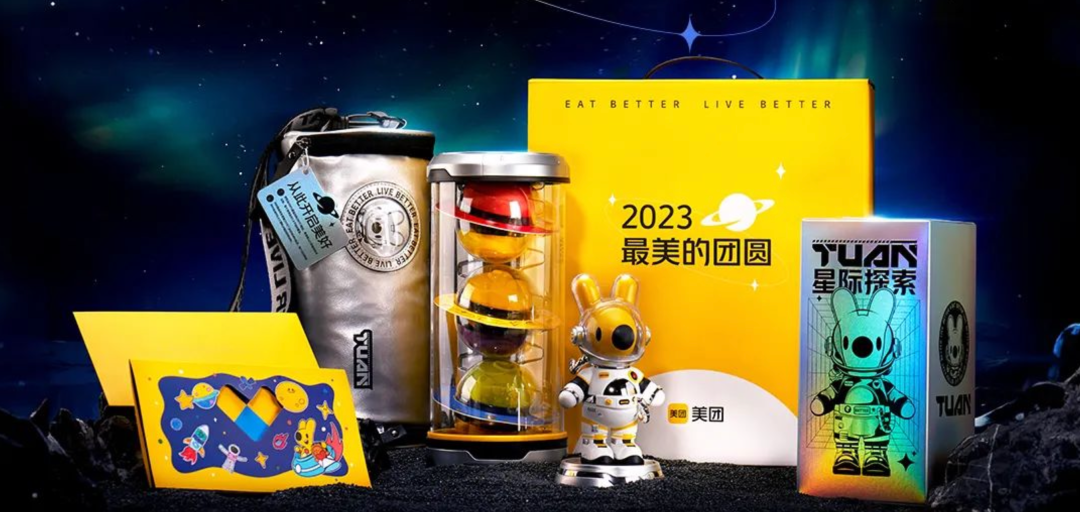 今年,美團(tuán)的中秋禮盒主打科技感,月餅被兩兩拼合組裝成星球,放置在“太空艙”內(nèi)。當(dāng)“星球”被評委們吃完,“太空艙”就成了造型特別的收納格。