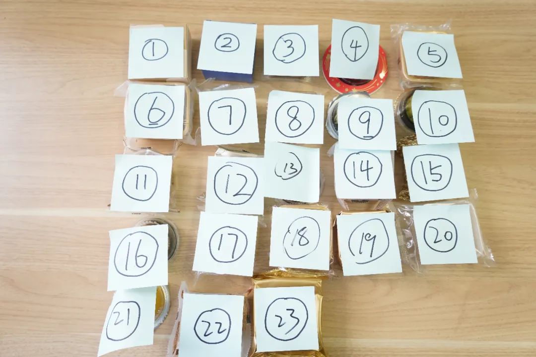 編號參與口味盲評的月餅們,趙扎嘿攝???????