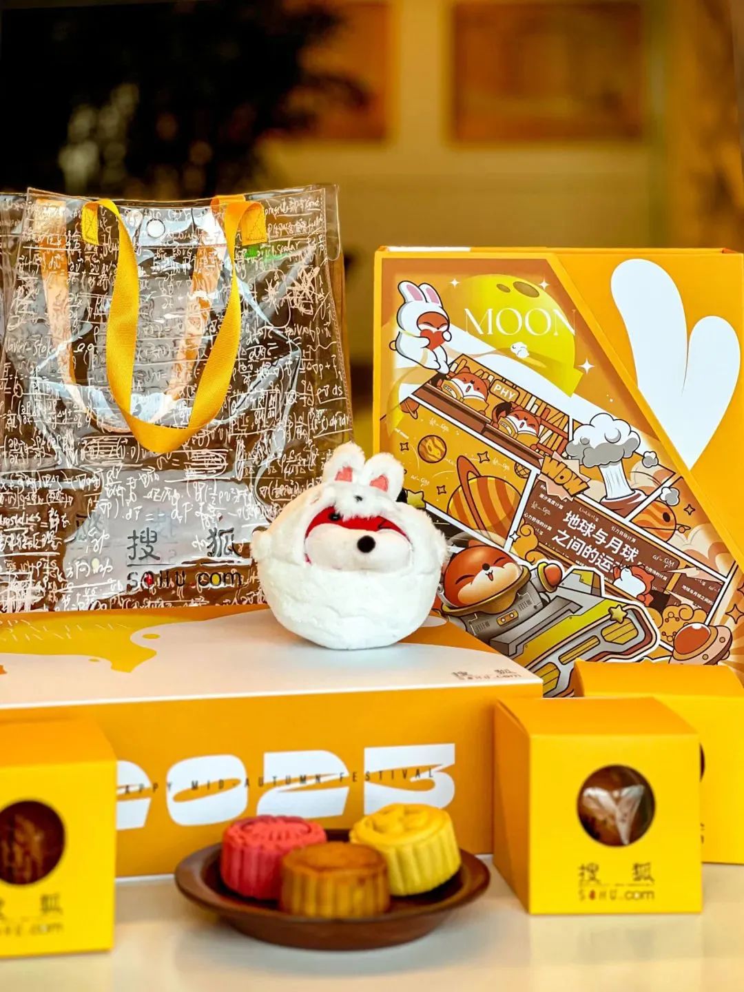 除了六種口味的繽紛月餅,遙望的中秋禮盒搭配了不少可愛的小物件,比如飛碟形狀的快客杯、月亮背景的冰箱貼以及中秋限定版兔子小Y。