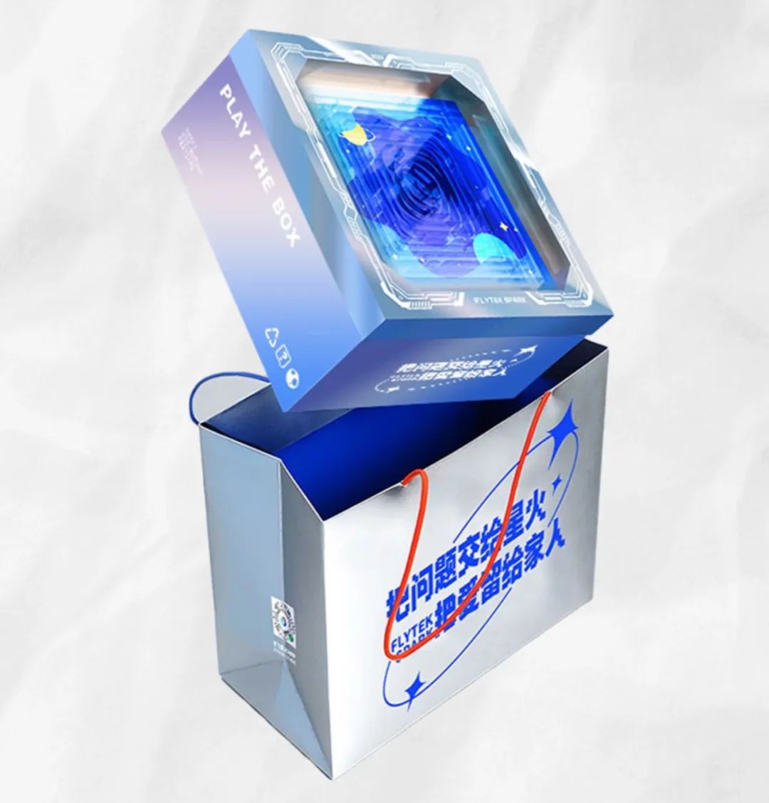 今年,科大訊飛的中秋禮盒以銀和藍(lán)為主色調(diào),其上印有一句醒目的口號:“把問題交給星火,把愛留給家人!