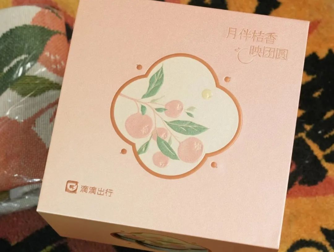 滴滴的中秋禮盒點綴著小桔子的裝飾元素,取“月伴桔香映團(tuán)圓”之寓意,整體包裝很大氣,并不花里胡哨。