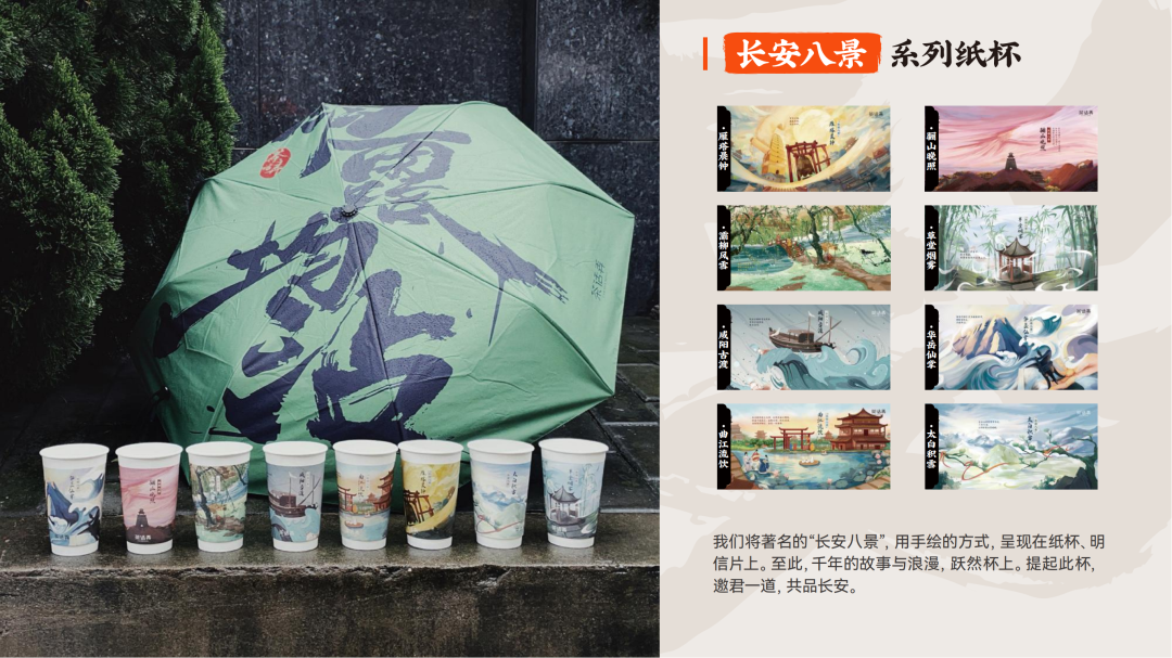 在紙杯的設(shè)計(jì)上,茶話(huà)弄從長(zhǎng)安歷史和人文入手推出多種系列杯型: