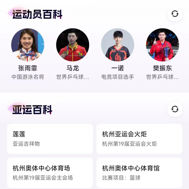 在賽場以外,快手提供了運(yùn)動員百科、亞運(yùn)百科等內(nèi)容,以及亞運(yùn)相關(guān)的常見問題解答,亞運(yùn)熱榜則向觀眾傳遞賽場實時熱點(diǎn)內(nèi)容。