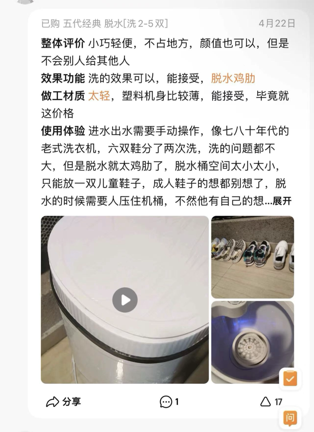 *電商平臺(tái)上的洗鞋機(jī)買家評(píng)論