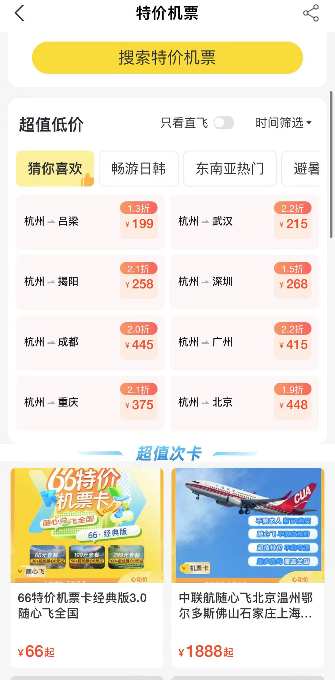 飛豬有意避開(kāi)攜程的出境游,加入國(guó)內(nèi)游混戰(zhàn)中。打開(kāi)飛豬APP,首頁(yè)信息流頂部能找到多個(gè)優(yōu)惠活動(dòng)入口,囊括特價(jià)機(jī)票、特色演出、特價(jià)民宿/酒店和景點(diǎn)優(yōu)惠票。